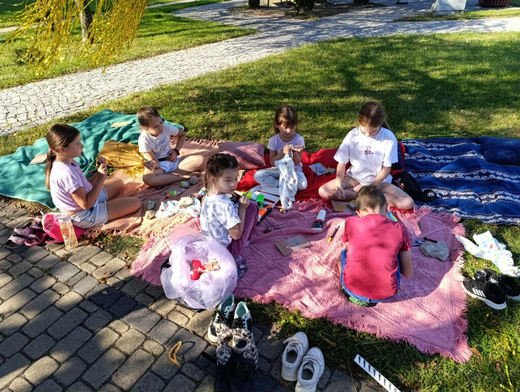 27 sierpnia w parku miejskim odbyły się warsztaty kreatywne – piękna pogoda, plener, twórcze działania i piękne prace dzieci i młodzieży pod okiem p. Joasi.