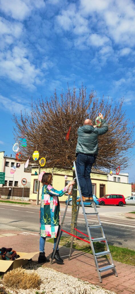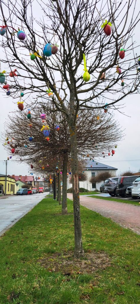 W dniu dzisiejszym przyozdobiliśmy kolejne drzewka. Podziękowania Szkołom z Gminy Frampol za dostarczone prace! W akcji społeczno-kulturalnej ubieraliśmy drzewka obok Urzędu Miejskiego i Centrum Integracji Społecznej we Frampolu.